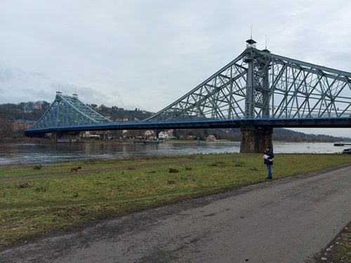 Mit Blick auf den Amtssitz des sächsischen Ministerpräsidenten und den „Grünen Bogenschützen“ erreichen wir die Albertbrücke und kurz darauf den Fährgarten Johannstadt, wo wir eine erste Pause mit Stärkung einlegen. Weiter geht es entlang der Elbe zur Waldschlößchenbrücke, deren Bau Dresden damals den Titel des UNESCO-Weltkulturerbes kostete, und mit Blick auf das ehemalige Wasserwerk Saloppe und die schönen neogotischen Elbschlösser geht es weiter zu der vom Namen her bekanntesten Dresdner Brücke, dem „Blauen Wunder“.